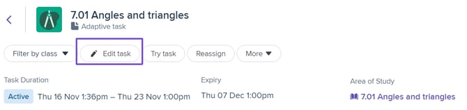 If the task has been assigned to a class, edits will apply to the entire class—it isn’t possible to edit the task for just one student or selected students.