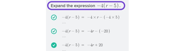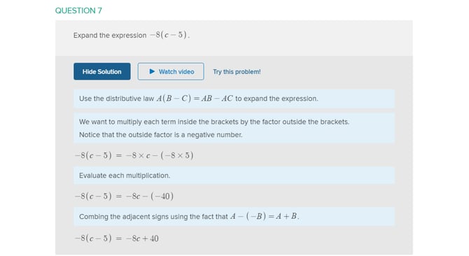 Mathspace will show every step on the way to the solution, as well as the thinking behind every step. This means that no matter where students are stuck, they will be able to follow the working provided.