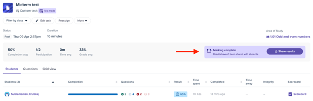 When results are ready, you’ll be able to review the marks, override any scores as needed, and add notes to explain overrides. After that, you can choose to unlock results so students can view them too.