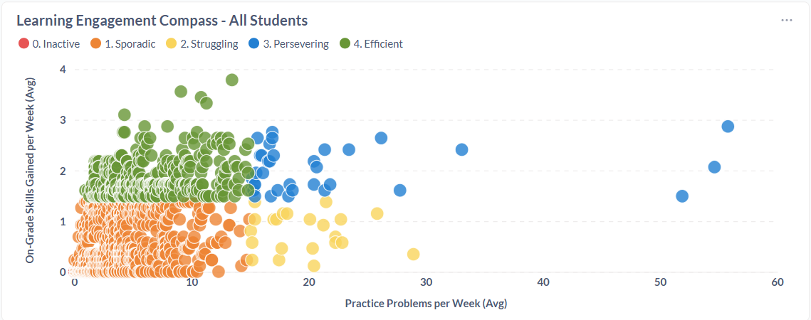 The Learning Engagement Compass classifies students into engagement profiles based on their effort and skill gains.
