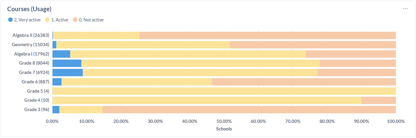 - The District Admin report is available to district admins and shows data across all schools in the district.